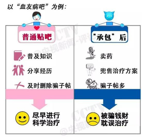 其实这种吧主商业化的方式在法律角度上讲是没有什么问题的,但是我们以上图中的“血友病吧”为例,一般来讲,这样的贴吧更多的为了给病患们交流、心理安慰的一个平台,可是一时旦百度将贴吧出售,自然也免不了会被一些山寨医院或无良商家所控制贴吧,那么到时就不是简单的骗财这么简单,如果这些“商家”在贴吧里大量流通虚假药品或大打虚假广告牌,很可能就会给病患错误的指导,严重的甚至耽误病情。